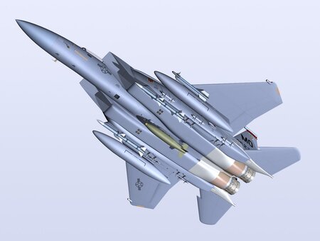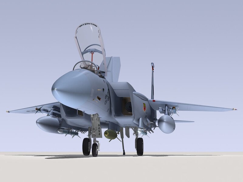 Landing gear bays are modelled with extensive detail, and all engine model elements correspond with those of actual F-15E aircraft engines.