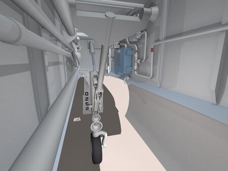 1 - Ground configuration, hatches are open, landing gears in extracted position