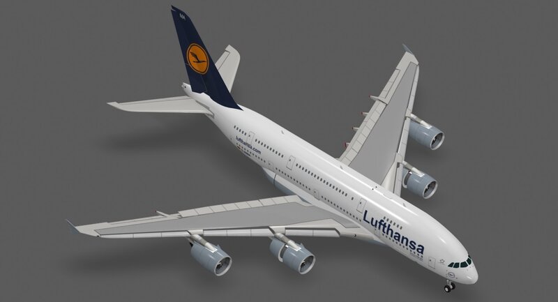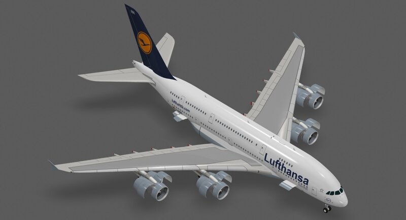 - Detailed 3d model of the Airbus A380-800 in Lufthansa paint scheme.-