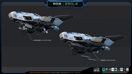 This Original package contains one Sci Fi RQ8 - Eagle / Fighter (not rigged). Model inspired by my Federation Frigate BE2 design, you can find this model in this CGPitbull account (This design is my own concept, does not repeat any existing work. You can use it without a doubt about copyright).
