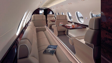 The long-range business jet features an enhanced variation of the 850XP’s winglets, increasing hot/high-altitude and cruise performance and range. On the runway in hot/high conditions, the 900XP requires 1,800 feet less runway for a 2,000 nautical mile trip with six passengers. It can complete coast-to-coast trips, Teterboro to Seattle for example.
