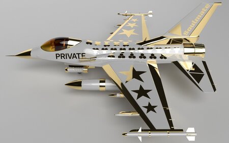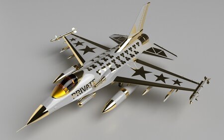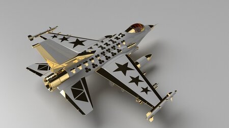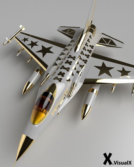 A Lux jet with golden material on it Hope you like it. If you use Maya Download The Maya AIO and open maya and set project to your extract location. I used Vray to render. Hope you like it