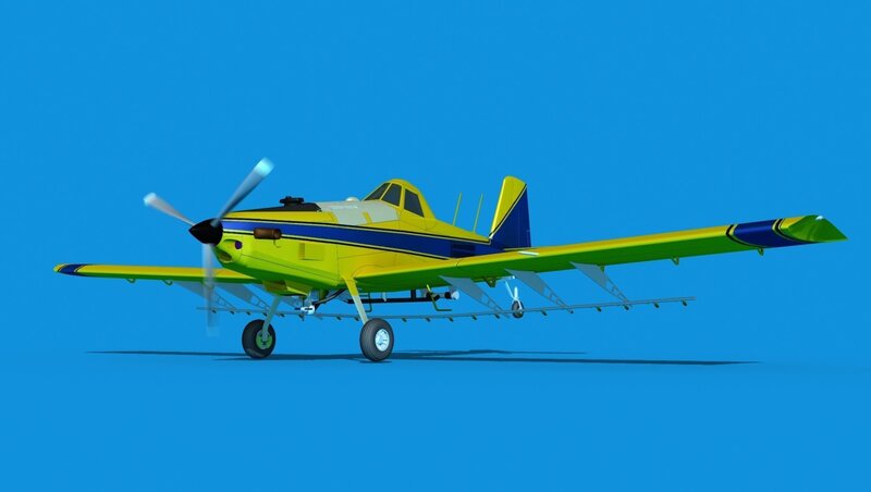 The Air Tractor AT-500 is a agricultural chemical sprayer developed by the Air Tractor Inc. It was developed in the late 1980s first flying in 1986. They are designed with a central hopper for chemicals and powders for spraying. It has a low wing monoplane configuration and is also a tail dragger. The wingspan is 50’. These have been the best selling agricultural spraying aircraft available. The model was built near to scale in real units and built based on drawings, photos, and other documents. This model has a moderately detailed cockpit and the following animateable features; ailerons, elevators, rudder, and wheels. These models render very well and look very realistic using good animation, lighting and rendering technique. It can be used in an animated or static position within a scene, animation or animated video, or possibly programming for a flight simulation application. This model was not designed for 3d printing, these are to be used as digital files only. If you purchase one for digital printing we do not guarantee that your print will be successful. Exporting of models is limited but good for several software applications. This model is fully textured with all materials UVW mapped and applied. Most materials are planar mapped and major materials include texturing. All textures and materials are included as shown. Objects are logically named for ease of scene management.No cleaning up necessary, just drop your models into the scene and start rendering.No special plug-ins are needed to open scene. In most cases the liveries are based on actual service liveries or paint schemes. Many of the units, airlines or countries who flew the plane are represented here. Dreamscape Studios is a US 3d modeling firm specializing in building high definition, accurate, and detailed 3D models of commercial, civilian, and military airplanes, ships, buildings and other subjects.Dreamscape 3d models are built in ultra-low to ultra-high polygon count, (most often) near to scale and include a good amount of detail based on the resolution target. If you have a question, error or problem with the model, let us know and we will do our best to provide or get a solution for you. Be advised our models are not designed for 3d printing unless they are advertised for that purpose.