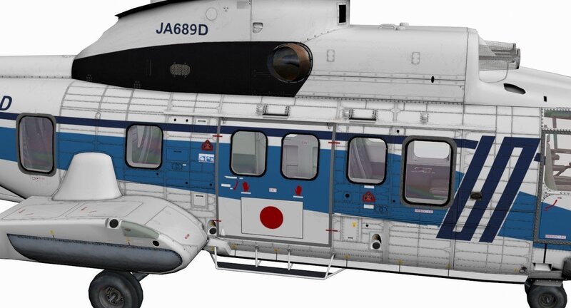 Textured and animated model of the AS332 Mk II Super Puma from Aerospatiale. It is a relatively low polygon model but highly accurate properly scaled to the real world dimensions so it is perfect for games or for realtime 3D engine presentations and showcases. The panels, instruments and gauges are modeled authentically according to real flight manuals. But simplified low polygon panels are also included on separate layer for higher fidelity. Simplified extra low-polygon models are also included on a layer for building up mesh collides in game engines for fuselage, interior and doors. Collider mesh pivots matches with the position and orientation of the visual parts they represent.