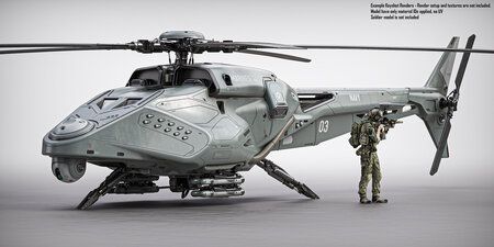 Original concept of Drone Helicopter Attention! Maya file contains mesh from cad and standart materials applied no uvs, no textures and render setup. Preview images made in Keyshot just to show the Idea.