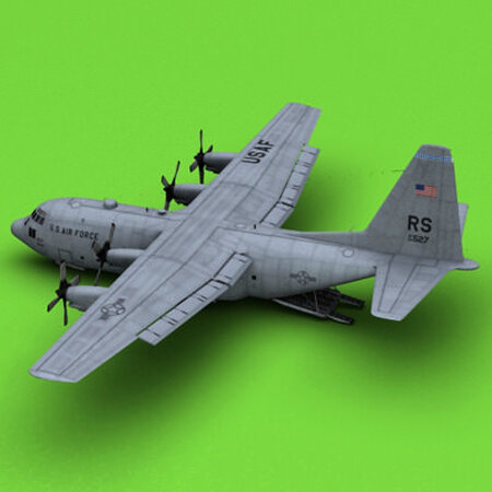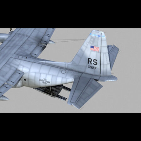 A highly detailed model of C-130 for USAF 37 AS,86 AW. All flight controls like elevators, ailerons, flaps, rudder and other movable part like oil cooler door, rear cargo door are cut out and ready for animation