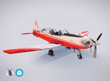 Low-poly 3D model airplane (Pilatus PC-7 Mk-I) with LODs