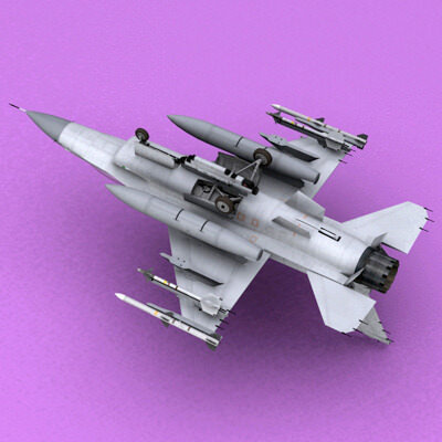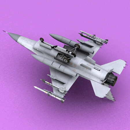 A detailed model of F-16C Block 40 for Royal Bahraini Air Force, fully detailed nozzle, air brakes, cockpit, gear bay and landing gear.