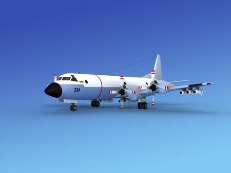 Orion is built in November 2010 very near to scale and has high quality textures and materials. It comes with lots of exterior detail, animateable flaps, ailerons, rudder, elevators, and propellers. The landing gear can be retracted and landing gear doors closed. We have increased the smoothness of the faces and the poly-count, remodeled most of the aircraft from scratch, and reworked all the materials. This model is available in multiple formats and comes with many different airline liveries. The Lockheed P-3 Orion is a four-engine turboprop anti-submarine and maritime surveillance aircraft developed for the United States Navy and introduced in the 1960s. Lockheed based it on the L-188 Electra commercial airliner. The aircraft is easily distinguished from the Electra by its distinctive tail stinger or "MAD Boom", used for the magnetic detection of submarines.