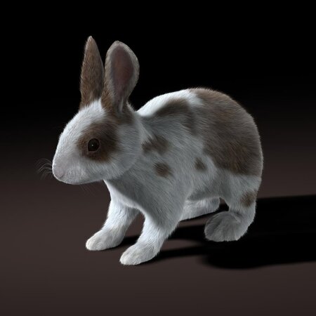High Detailed Realistic Rabbit (spotted variant) ;FULLY RIGGED and ANIMATED, UV mapped and smoothable, made with Maya - Shave and A Haircut for fur (see the bottom of the page for further information).