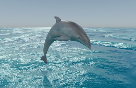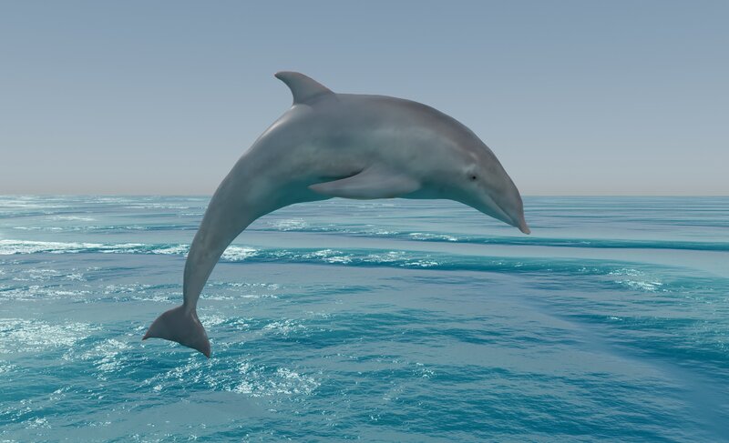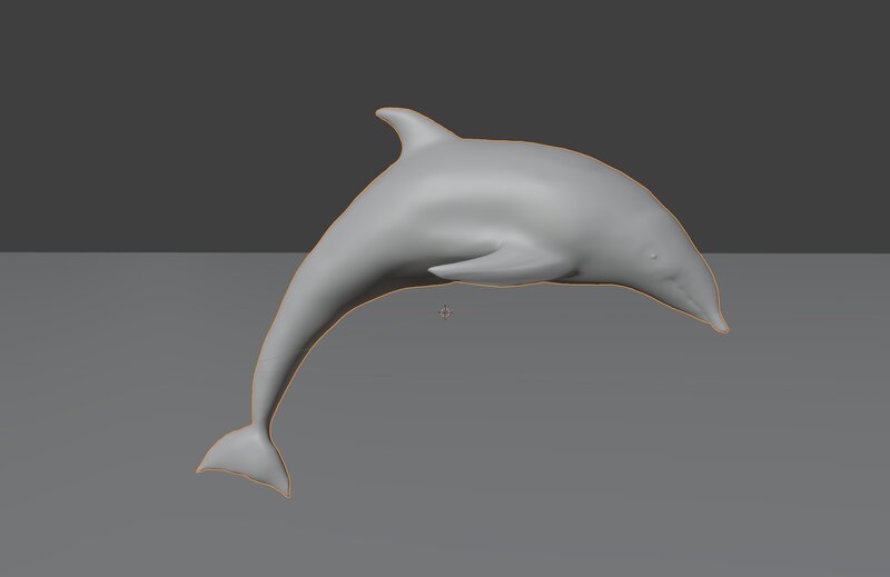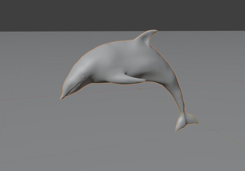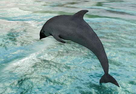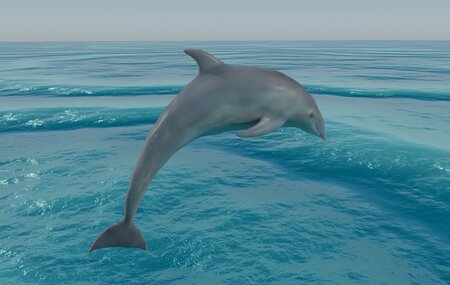 A dolphin jumping. 16k verts / 32k faces. Vertex colors with a separate material for shiny black eyes.