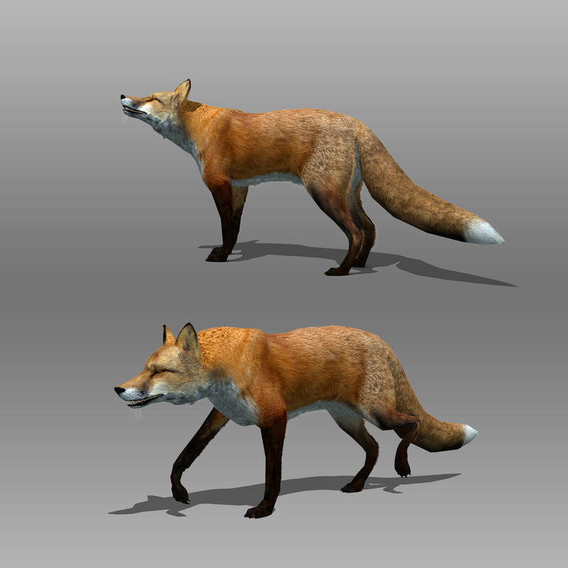 A low poly model of a Fox fully rigged and textured. Has facial bones to contol lips, braw and eyelids. Great for games and animations.