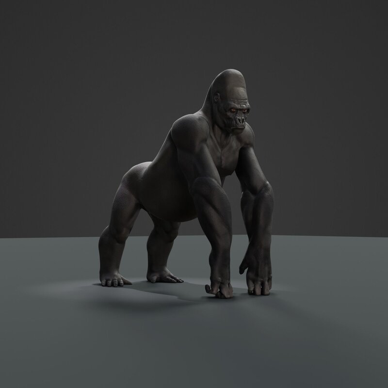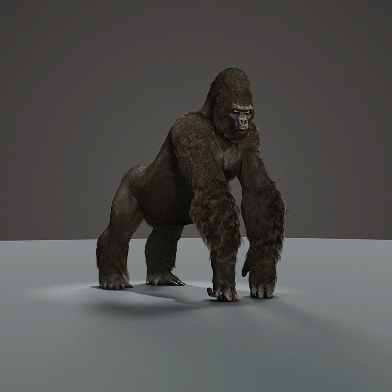 Ape animation embedded & supplied in blender file together with hair particle system.