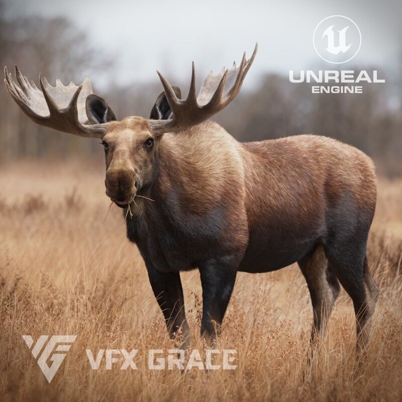 Presenting a highly realistic male moose character asset, crafted specifically for Unreal Engine 5.2 and above. This meticulously designed asset encompasses the model, textures, materials, fur, rigging and animations, making it ready for immediate integration into your projects.