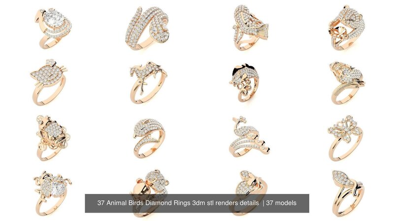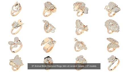 37 Animal Birds Diamond Rings 3dm stl renders details 3D Model Collection