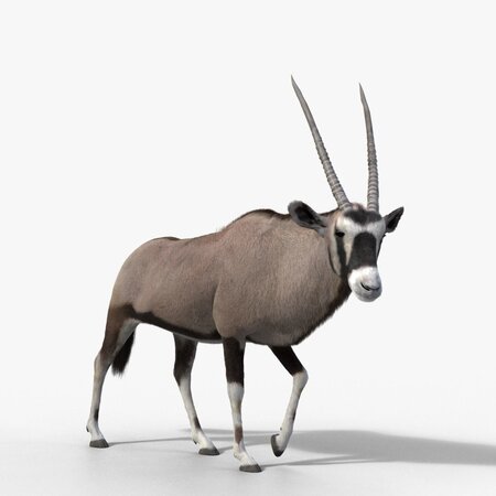 This is a realistic African oryx model made with Cycles renderer at real-world scale, with textures, rigging, animation, and hair. Three different sets of body maps and four walking animations are available, which can be switched freely.