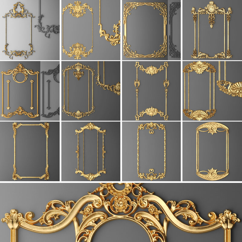 Collection stucco molding frame Collection of stucco, wall decor, set of frames, classic frames, baroque frame, plaster stucco, frames for CNC machines, modeling, molding, pattern, carving, plaster and wood