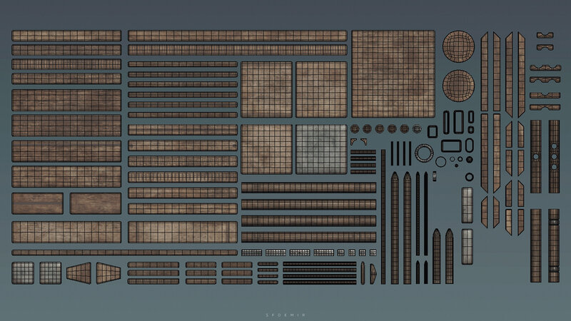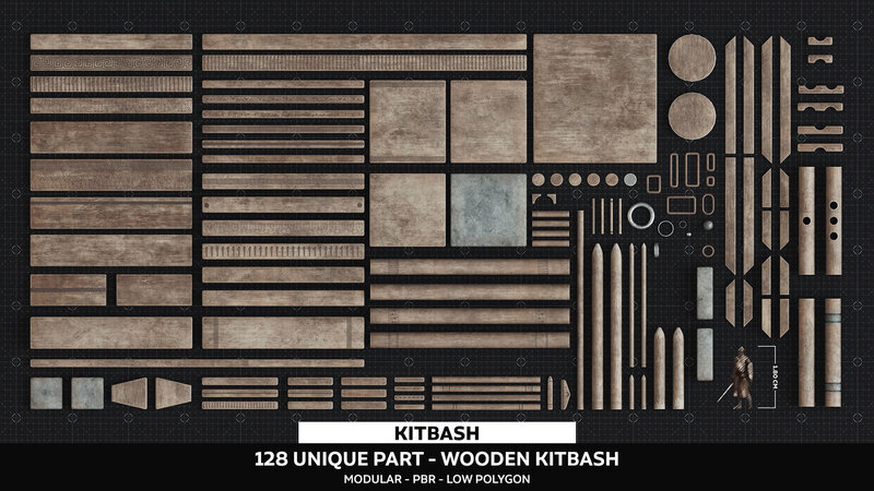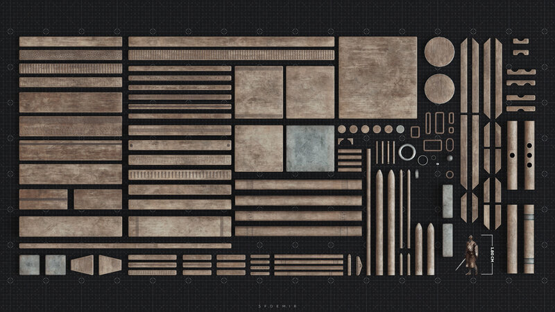 Medieval Wooden Kitbash Collection Low-poly 3D model