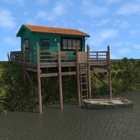Here is a small oyster hut inspired by those that can be found in Mornac-Sur-Seudre (France). This structure is found at the edge of seawater channels or rivers. Although typically French, you could find it in any country in Europe, North America and even Asia. So you can easily integrate it into all your scenes.