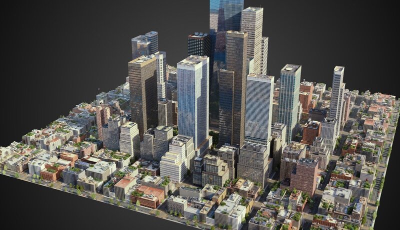 This is a full 3d city model modeled based on American cities. This is a real-world scale model. The whole scene is setup and fully ready to render. All materials are setup in Vray. Light setup by HDRI and Dome light.