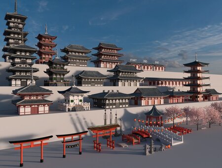 9 different pagodas and buildings (16 with additional level and interchangeable colors)