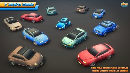 A complete package, containing 33 stylized car models, perfect for your project. Ideal for racing simulators, city management games, and any driving related project. For performance reasons and with mobile devices in mind, the models use a tiny 128*128 color texture and a 128*4 toon ramp. All models have a low poly count, ranging from 100 triangles for the simplest models, to 5K triangles for the more complex ones. Moving parts are separated so they can be animated.
