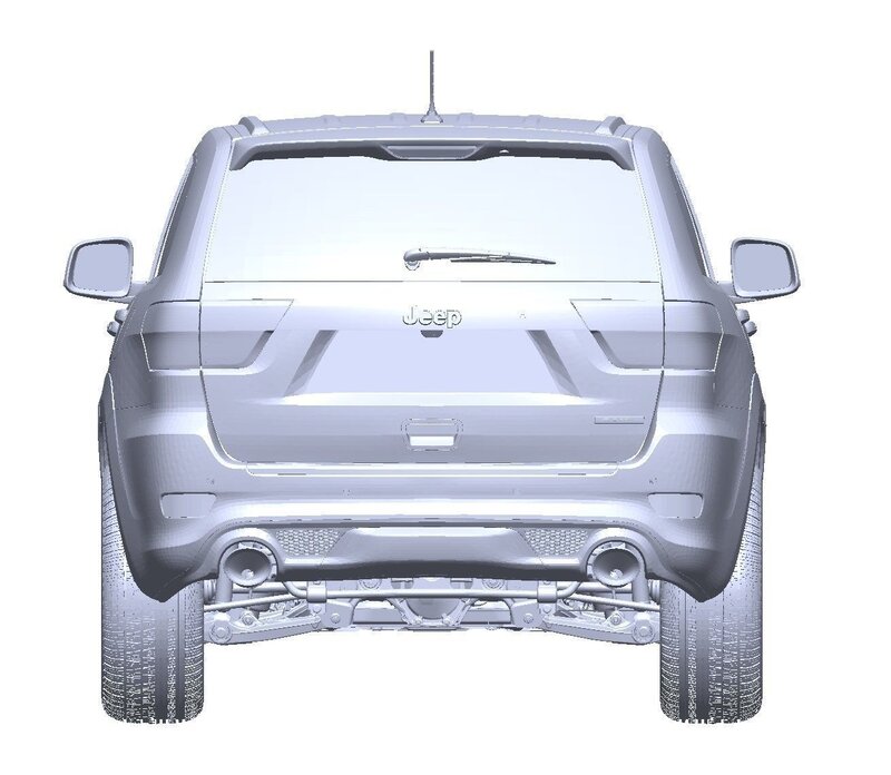 Jeep Grand Cherokee 4x4 2012 SRT 8 complete 3d scan model, complete body, chassis and mechanics. High quality and accurate scan of a 99% real scale model, so all measurements correspond to the real truck. Prefect for accessory modeling bumpers and other parts