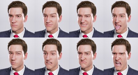 25 blend shapes facial expressions attributes and 11 phonemes.