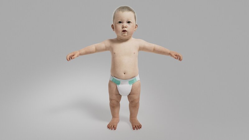 This Baby is a high quality model. The model has a fully textured design that allows for close-up renders, and was originally modeled in Maya 2022 and rendered with Arnold.