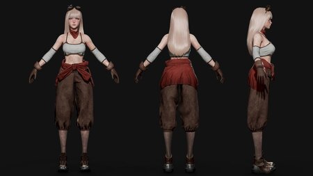 Rigged with Epic Skeleton. Additional bones that are added to Epic Skeleton: eye_l/r, breast_l/r, sleeve_01-03_r/l, hair_short_01-04_l/r, hair_l/r/back_01-03