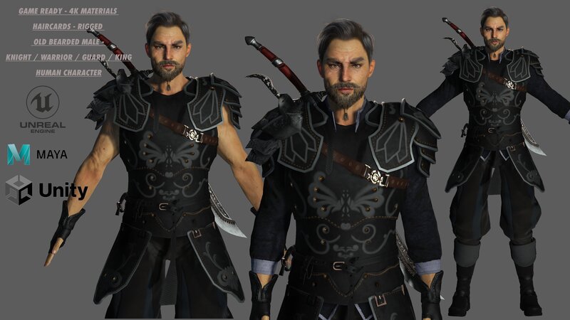 MILLENNIAL AUTOMOTIVE LLC » Our products » Character » AAA 3D OLD BEARDED MALE KNIGHT -REALISTIC RIG GAME CHARACTER Low-poly 3D model