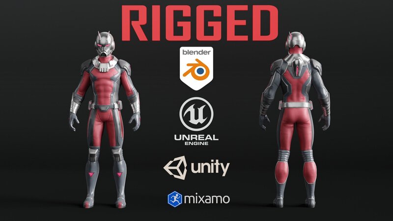 Ant-man RIGGED 3D Character Model Low-poly 3D model
