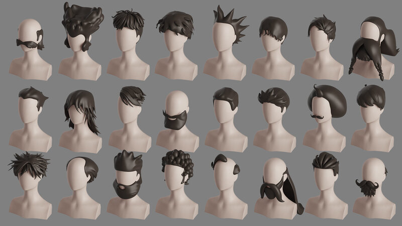 MILLENNIAL AUTOMOTIVE LLC » Our products » Character » Stylised Man Hair Bundle 3D model