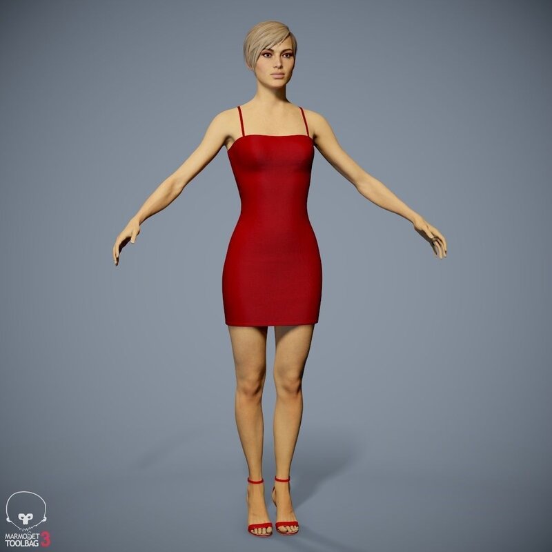Female Character – Ana - Dress Real-Time Game-Ready 3D Model This is a high quality realistic asset made for Real-Time engines using PBR technology as seen in many modern AAA games. It can be used in cinematics or can be simplified for mobile use.