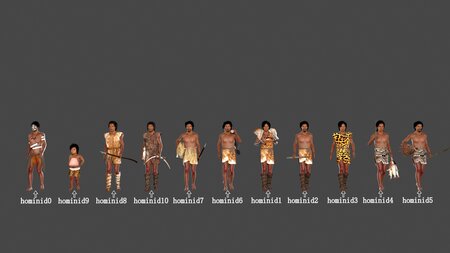 MAX2016 file, V-Ray materials, BIP skeleton, walking animation, TurboSmooth modifier, renderable. Maya2020 file, Arnold materials, rigging, walking animation. C4D file, default materials, rigging, walking animation. Special Note: hominidall.ZIP contains all the character models combined. The compressed files hominidMAX/hominidC4D/hominidFBX/hominidMAYA0-10 are individual model files for characters 0-10.