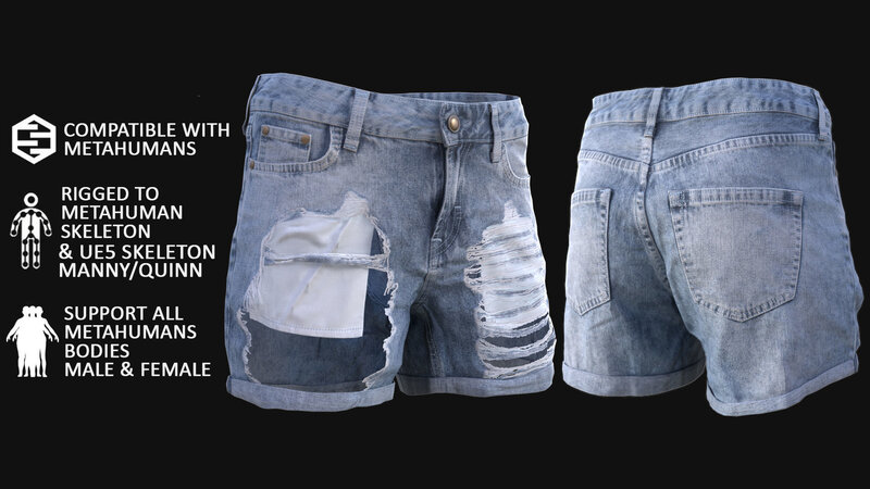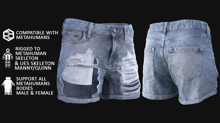 Denim Shorts 83 - All MH Bodies and UE5 Skeletons - Rigged Low-poly 3D model