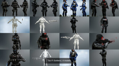 This set features Sci Fi characters, from my collection of assets, you can buy each of them individually or all at once with a discount. The collection consists of 4 models. You can find out more about each item in the collection. To do this, select a model from the collection and click on it. You will go to the individual model and see its data.