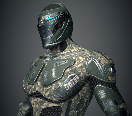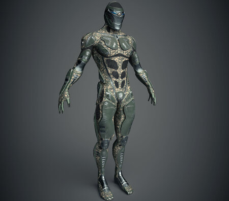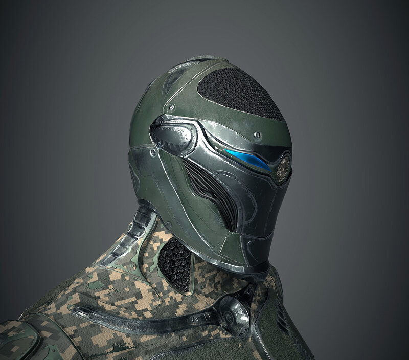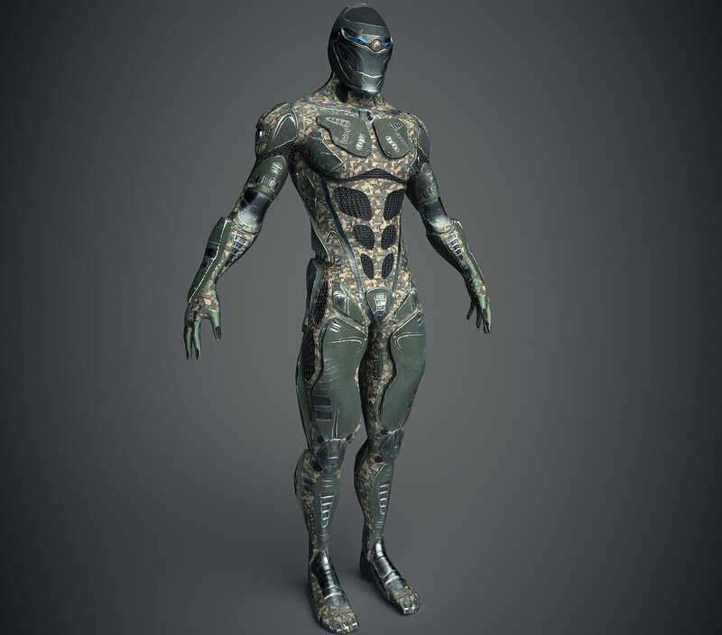Qualitative low poly 3d model of Future Warrior with PBR textures. Good topology for Rigging and Animation! = Available formats: - Obj - Fbx -3ds Max 2017 LOWPOLY (Game resolution) -This Resolution is preferably for using Ingame. 30338 Polys 32591 Verts = -PBR Textures- 3 texture sets: Body: -Base color -Normal -Specular -Glossiness -Metallness -Roughness Resolution: 8192x8192 px Format: PNG Head: -Base color -Normal -Specular -Glossiness -Metallness -Roughness Resolution: 4096x4096 px Format: PNG Head Element (Wires etc.) -Base color -Normal -Metallness -Roughness Resolution: 4096x4096 px Format: TGA = Character was Rendered in Substance Painter with Iray Render. Render Scene not included! = Best regards from Zstuff! Click on me to see all my models!