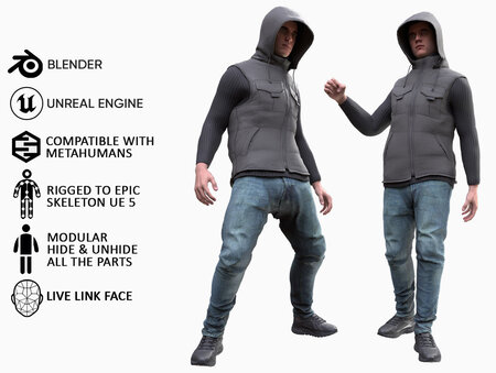 100% compatible with male Metahuman (Normal/Average body - MH Skeleton) This is not a Metahuman's body and face. This is our creation. But this body has exactly the same shape as the Metahuman's body (Normal/Average) So you can put this Outfit on your Male Metahuman (Normal/Average)
