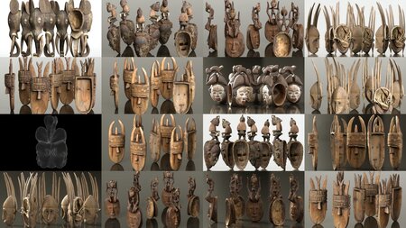 Carved Wooden Mask - 3D Model Collection (7 items). Fotoreal: Higly detailed texturing & mesh