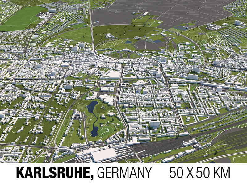 A DETAILED 3D MODEL CITY MAP OF KARLSRUHE, GERMANY: