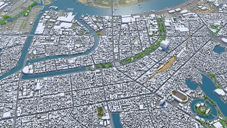 Accurate 3D city model and its surrounding area based on GIS data Year 2023