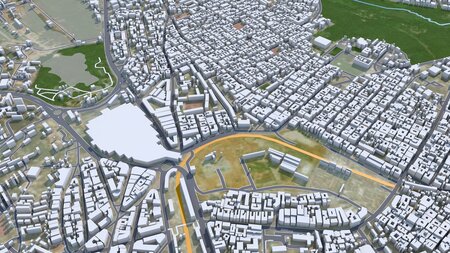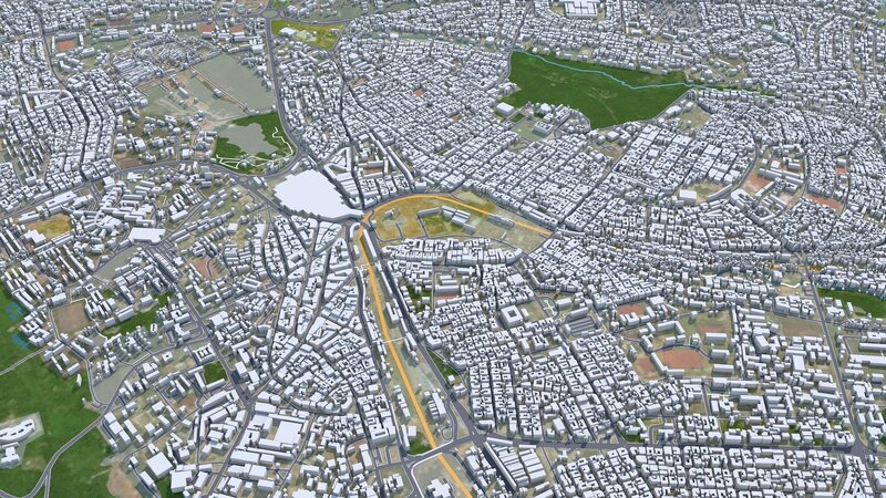 Accurate 3D city model and its surrounding area based on GIS data Year 2023