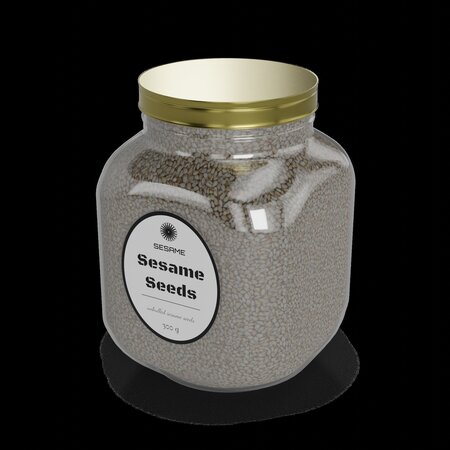 Sesame Seeds: Encased in a traditional glass jar with a metal lid, these sesame seeds are a must-have for any culinary enthusiast. The jar is adorned with a vintage-inspired label that showcases a sprig of sesame plants and the words Sesame Seeds in elegant script. With a net weight of 300 grams, these unhulled sesame seeds are perfect for toasting and sprinkling over Asian dishes or homemade bread.