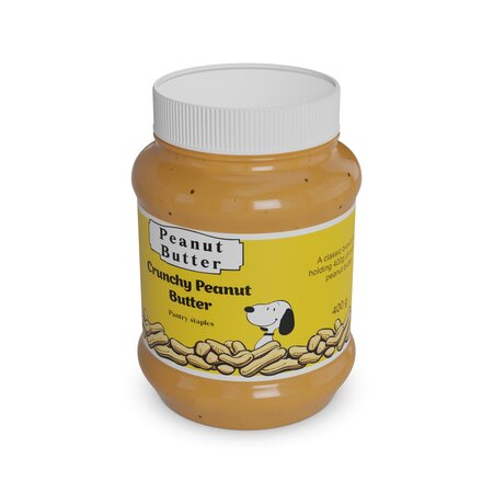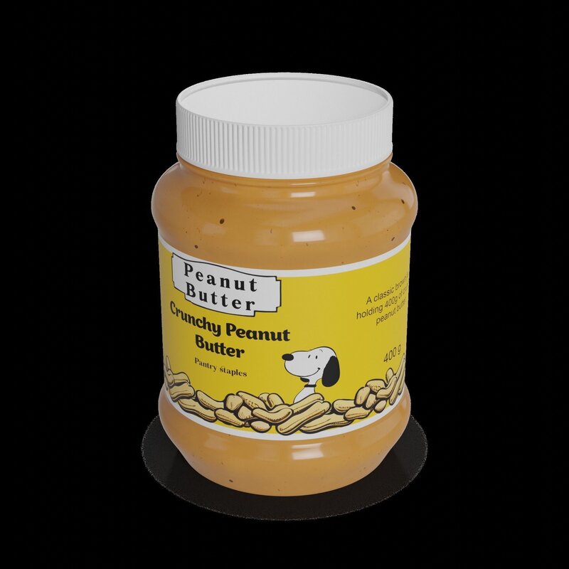 Peanuts: A classic brown jar, holding 400g of crunchy peanut butter. The packaging includes a traditional label design, with a bold Crunchy Peanut Butter text and a small graphic of peanuts being crushed.