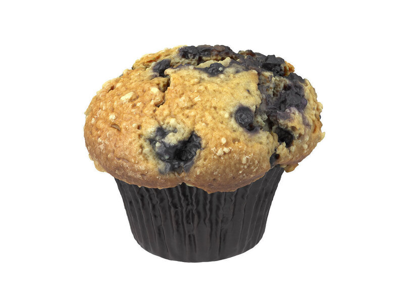 Highly detailed, photorealistic, 3d scanned model of a blueberry muffin. 8k textures maps, optimized topology and uv unwrapped.