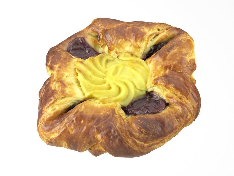 Highly detailed, photorealistic, 3d scanned model of a raspberry vanilla danish pastry . 8k textures maps, optimized topology and uv unwrapped.