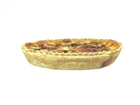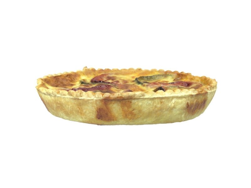 Highly detailed, photorealistic, 3d scanned model of a tomato zucchini quiche. 8k textures maps, optimized topology and uv unwrapped.
