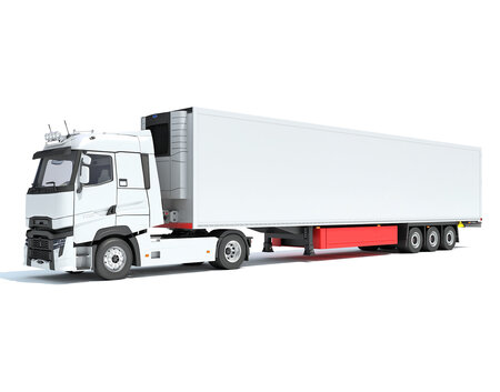 Highly detailed 3d model of truck with reefer refrigerator trailer.