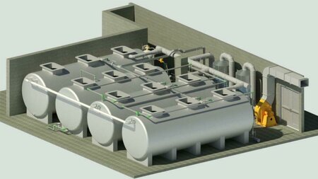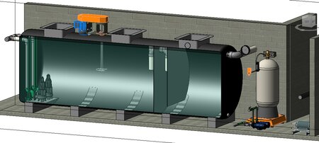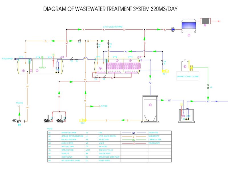 This wastewater treatment plant uses the combined technology of Anaerobic-anoxic-oxydation. Capacity of 350m3/day; Use for residential building; Location: Hanoi, Vietnam.